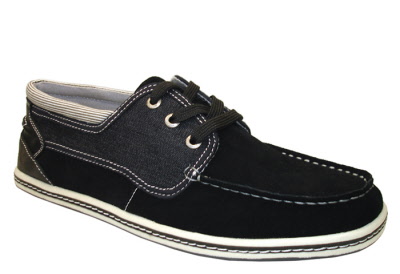 Soft Suede uppers / sides with denim facing sides / heel and textile fabric trim detail on the collar. Contrast Suede detail on the heel. Textile laces with a baseball stitch seam along the uppers. Moccasin construction. Rope embellishment along the midsole. Fully textured insole for maximum comfort. Soft rubber sole completes the look. Unique but ever so stylish, wear these with Jeans / Chinos or Shorts or just about anywhere.