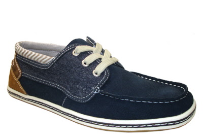 Soft Suede uppers / sides with denim facing sides / heel and textile fabric trim detail on the collar. Contrast Suede detail on the heel. Textile laces with a baseball stitch seam along the uppers. Moccasin construction. Rope embellishment along the midsole. Fully textured insole for maximum comfort. Soft gum rubber sole completes the look. Unique but ever so stylish, wear these with Jeans / Chinos or Shorts or just about anywhere.