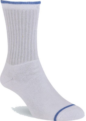 Terrific quality cushioned sports sock. 80% cotton / 18% polyamide / 2% lycra. Features cool mid blue banding around top of sock and toe area. Classic style crew length sock.