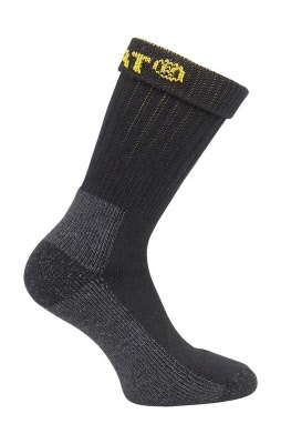 Soft feel cotton mix, cushioned toe , foot and heel area.  Two tone deign. Black- grey panel, cat logo. Deigned for Work or for those of you wanting a thicker sock. Industrial strength Ideal forsafety &work boots.   Fabric contents: 76% Combed Cotton  22% Polyester / 2% Elastane.   Extra resistant toe & heel.    Comfort top with anti-slip.
