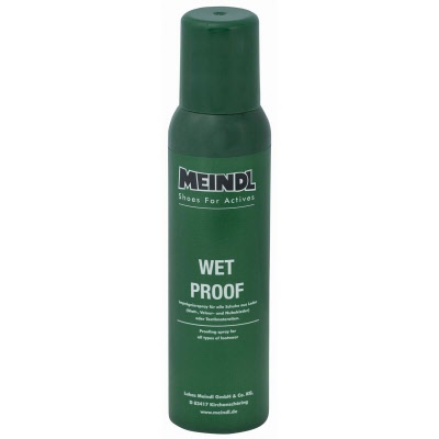 Meindl Wetproof is a pump action spray. Wetproof is a water proofing penetrating spray suitable for all types of footwear from leather, suede & fabric.