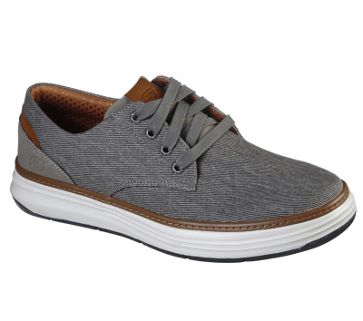 Take it easy with a classic style and upgraded comfort in Skechers Moreno - Ederson. Vintage-washed soft canvas fabric upper in a lace-up comfort casual with Air-Cooled Memory Foam insole.