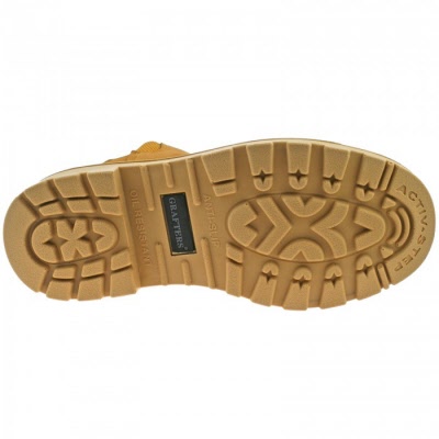 Nubuck Leather uppers,  textile linings, steel toe plate. Nitrile rubber treaded sole. Non marking, ladder grip, heat, oil, acids resistant, non clog sole.  Lighterweight item with padded comfort. Full safety rating. en 345 certified.